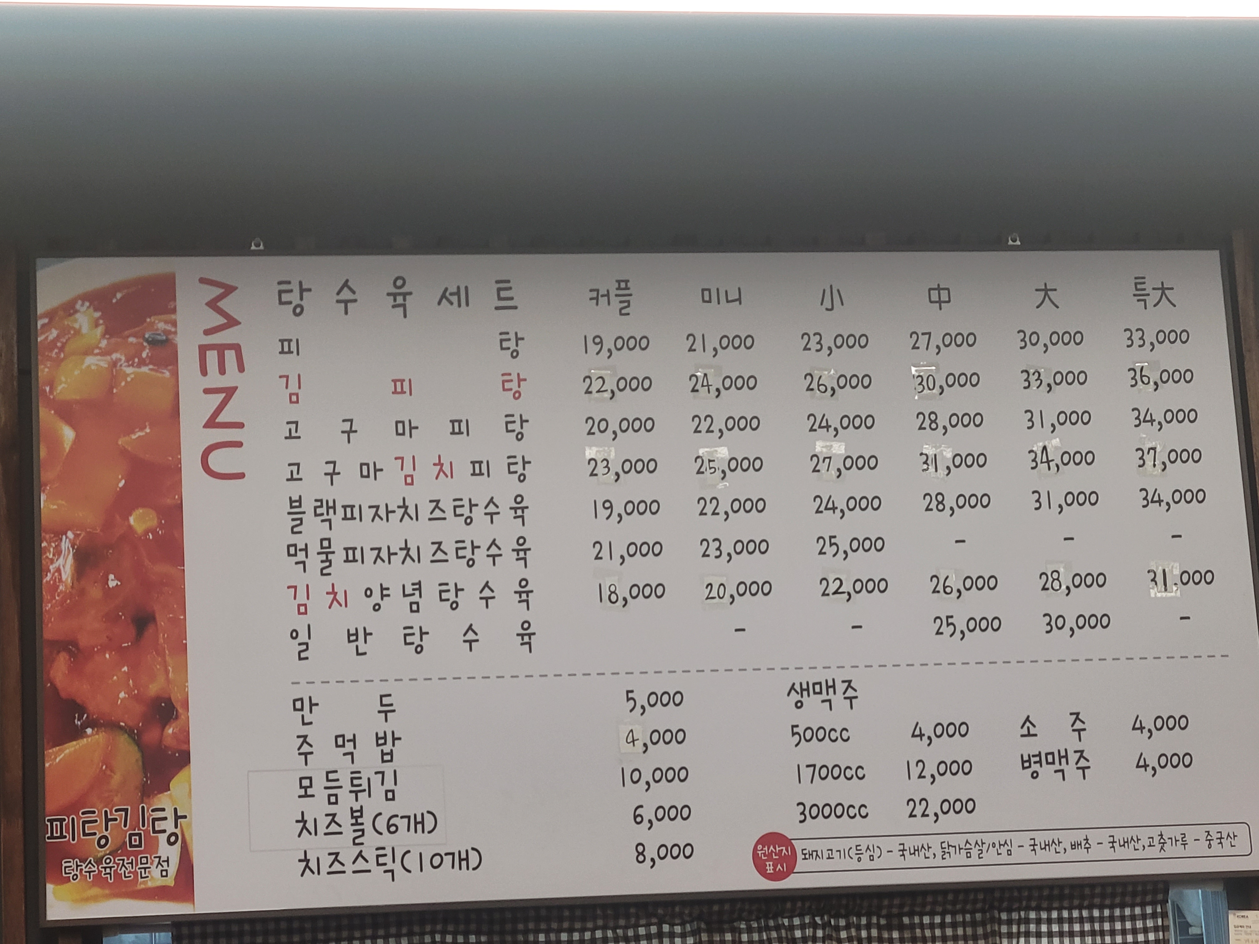 저희는 4인가족으로 고구마김치피탕 소짜 시켰습니다! 양이 정말 많아서 잘 시켜야 할 것 같아요~
