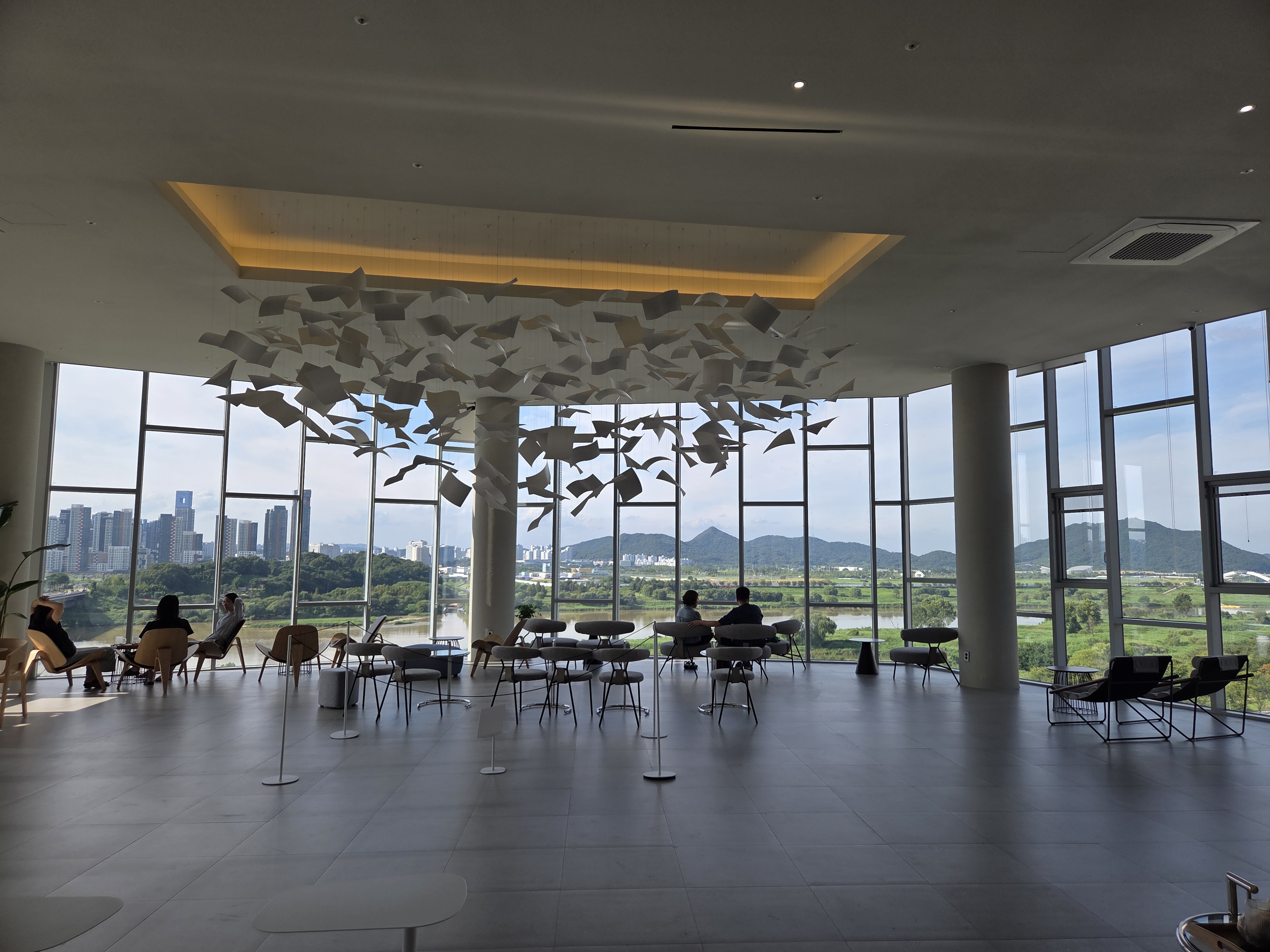 오늘 지인들과 식사후 카페 갔는데 삼면이 통창이라 탁트여 있어 세종시 금강뷰가 넘 좋았어요~^^