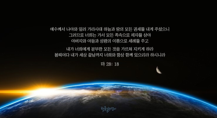 마 28 : 18 예수께서 나와 일러 가라서 내 하늘과 땅에 모든 권세를 내게 주셨으니